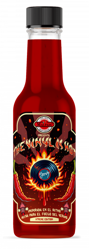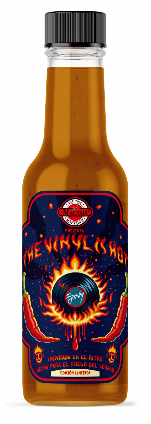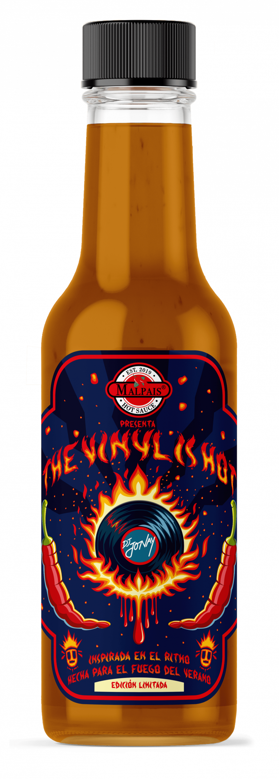 “The Vinyl is Hot Medium”, la salsa picante mediana de edición limitada inspirada en el vinilo de DJ Jonay. Con piña de El Hierro, coco y ají amarillo peruano. ¡Pide la tuya ahora y sube el volumen al sabor!